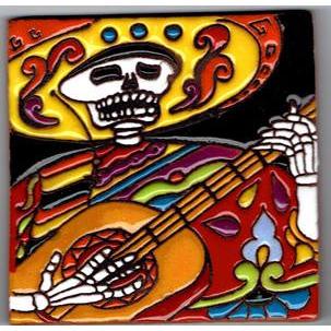 Skeleton Playing Guitar Tile Coaster